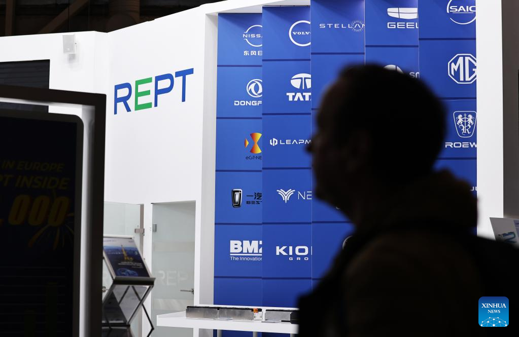 People visit the pavilion of Chinese company REPT Energy at the 2024 Paris Motor Show during the media day in Paris, France, Oct. 14, 2024. (Xinhua/Gao Jing)