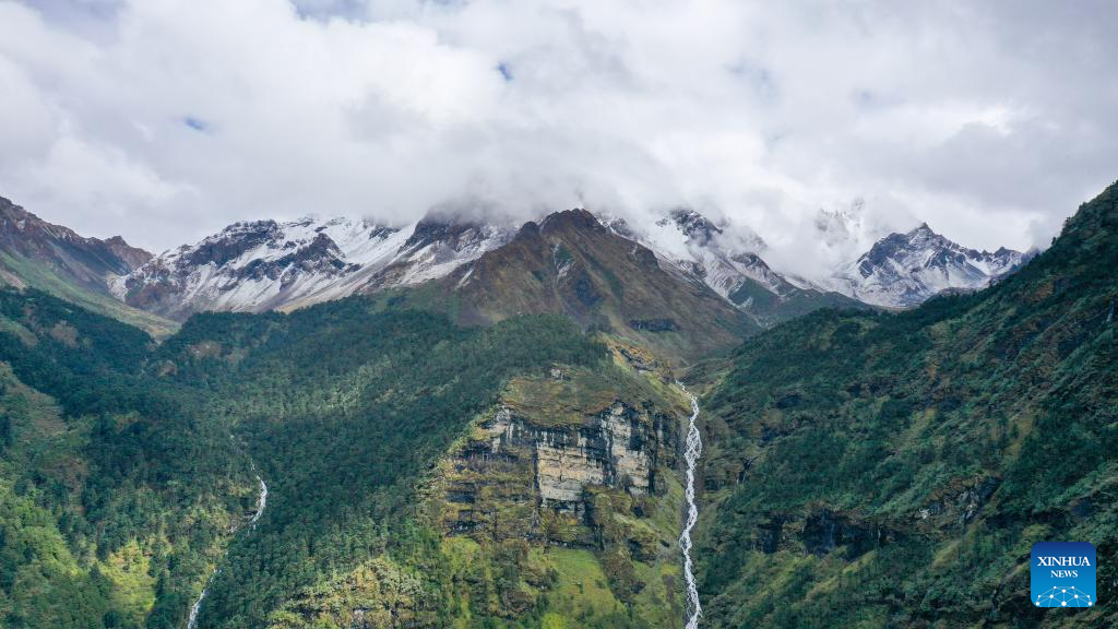 An aerial drone photo taken on Oct. 14, 2024 shows a view of Yumai Township in Shannan City, southwest China's Xizang Autonomous Region. (Xinhua/Ding Ting)