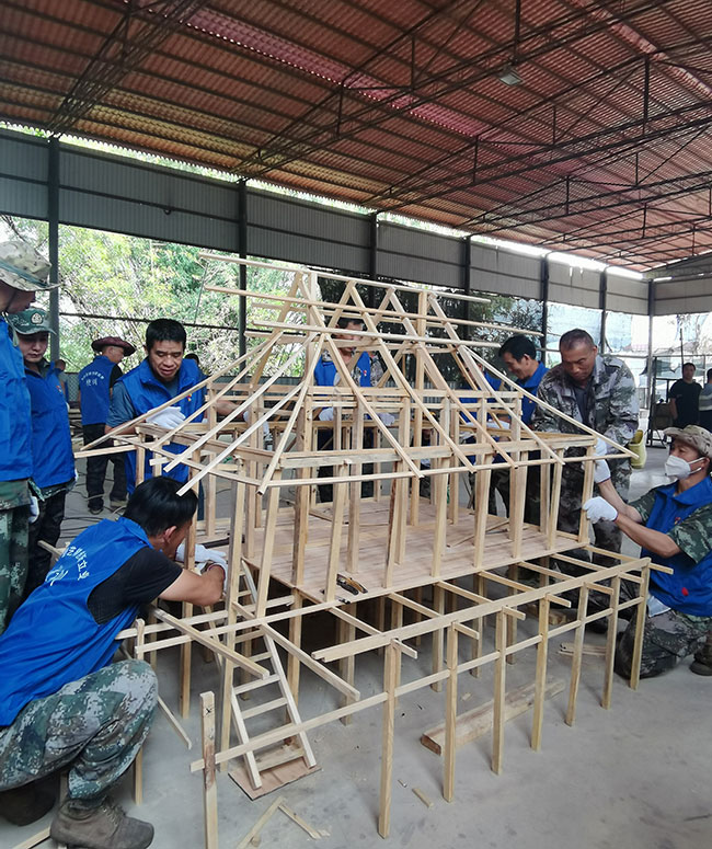 People learn how to build a traditional house of the Dai ethnic group in Xishuangbanna Dai Autonomous Prefecture, southwest China's Yunnan Province. (Photo courtesy of the human resources and social security bureau of Jinghong city)