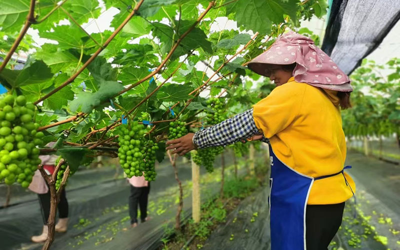 A worker works at a grape orchard in Menghai county, Xishuangbanna Dai Autonomous Prefecture, southwest China's Yunnan Province. (Photo courtesy of an employment service platform in Menghai county)