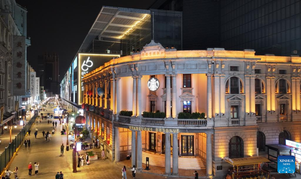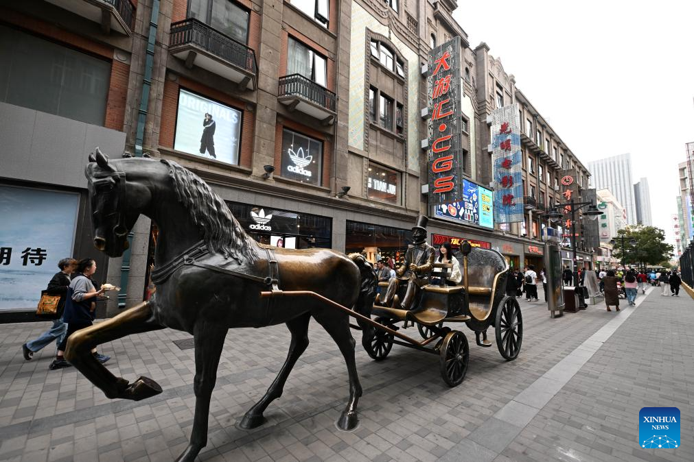 People visit the Golden Street commercial area in north China's Tianjin, Oct. 16, 2024. (Xinhua/Zhao Zishuo)