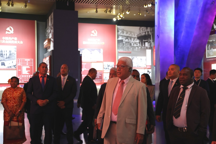 Participants who attend the fourth Pacific Island Countries-China Political Leadership Dialogue visit the Museum of the Communist Party of China in Beijing, Oct. 17, 2024. (Photo by Wang Jing/China Daily)