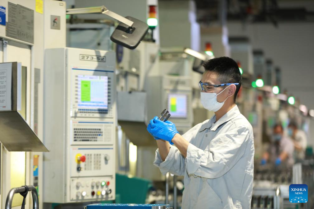 This file photo taken on Feb. 25, 2020 shows a technician working at Bosch Powertrain Systems Co., Ltd. in Wuxi, east China's Jiangsu Province. German multinational giant Bosch Group signed an agreement Wednesday evening to set up its strategic commercial vehicle China headquarters in the city of Wuxi, east China's Jiangsu Province, indicating its bullishness on China's new energy vehicle and smart driving industries. (Xinhua)