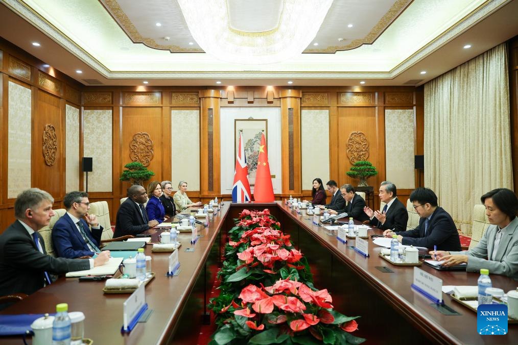 Wang, also a member of the Political Bureau of the Communist Party of China Central Committee, noted that China and the UK, both permanent members of the UN Security Council and major economies in the world, should be upholders of the UN-centered international order, collaborators in addressing global challenges, and partners in achieving national development.