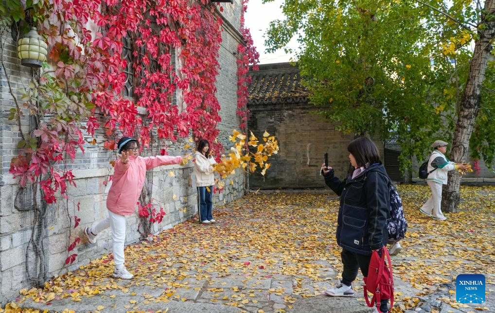 People enjoy the autumn scenery in the Gubei Water Town in Beijing, capital of China, Oct. 19, 2024. (Xinhua/Chen Yehua)