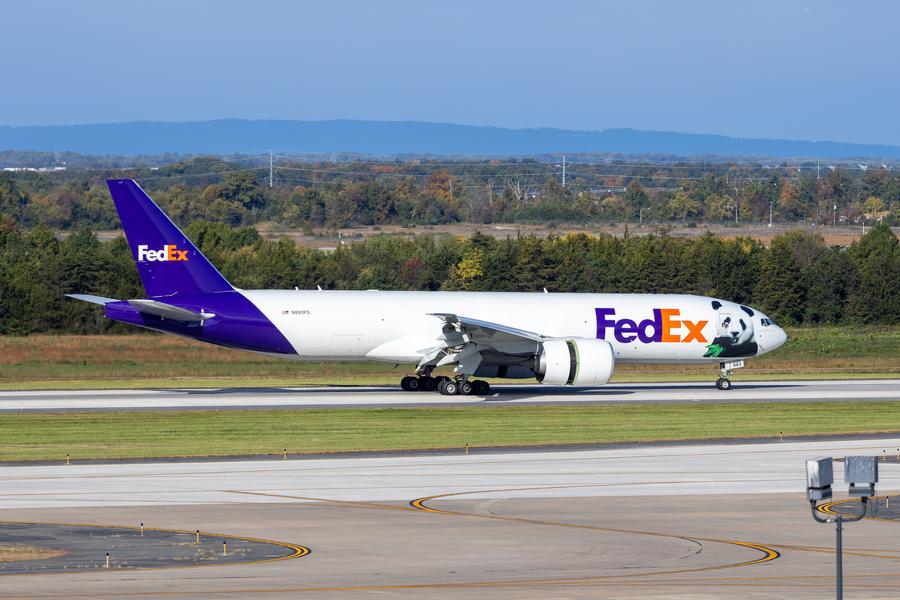 An airplane transporting giant pandas arrives at Dulles International Airport near Washington, D.C., the United States, on Oct. 15, 2024. (Xinhua/Hu Yousong)