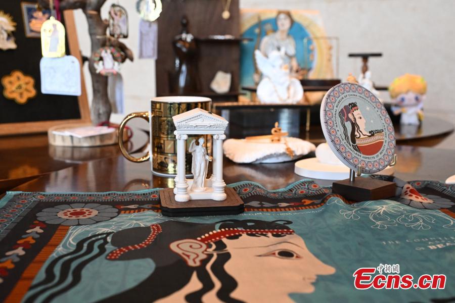 Photo taken on Oct. 21, 2024, shows the cultural and creative products of the exhibition "The Diversity of Beauty-Art and Life in Ancient Greece". (Photo: China News Service/Tian Yuhao)