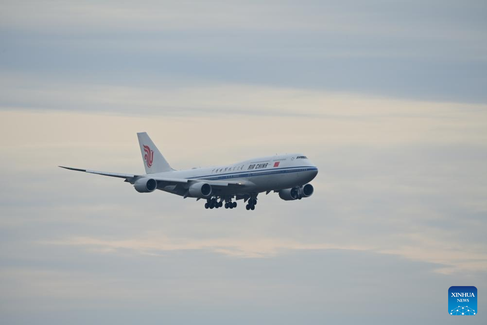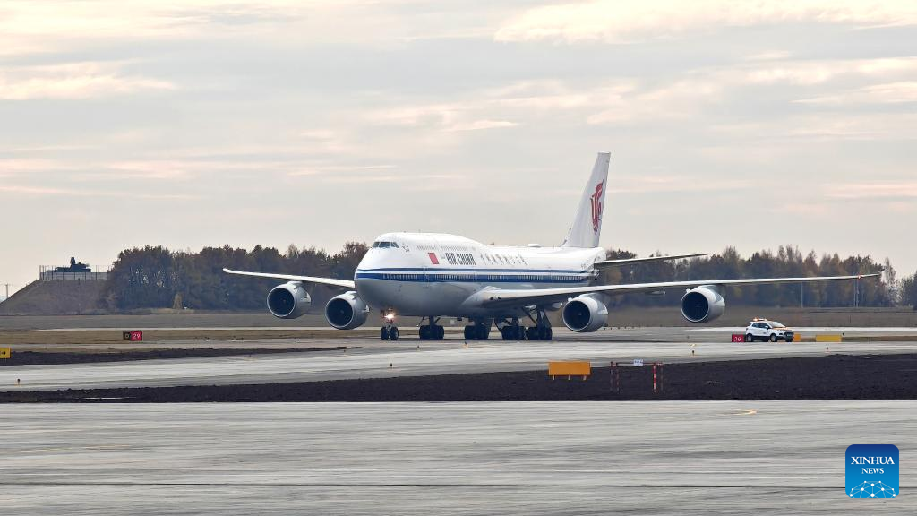 Chinese President Xi Jinping's plane arrives in Kazan, Russia, Oct. 22, 2024. Xi arrived in Kazan on Tuesday for the 16th BRICS Summit at the invitation of President of the Russian Federation Vladimir Putin. (Xinhua/Zhai Jianlan)