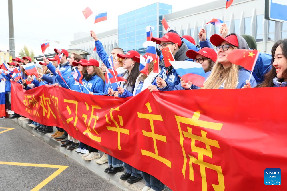 People welcome Chinese President Xi Jinping in Kazan, Russia, Oct. 22, 2024. Xi arrived in Kazan on Tuesday for the 16th BRICS Summit at the invitation of President of the Russian Federation Vladimir Putin. (Xinhua/Bai Xueqi)