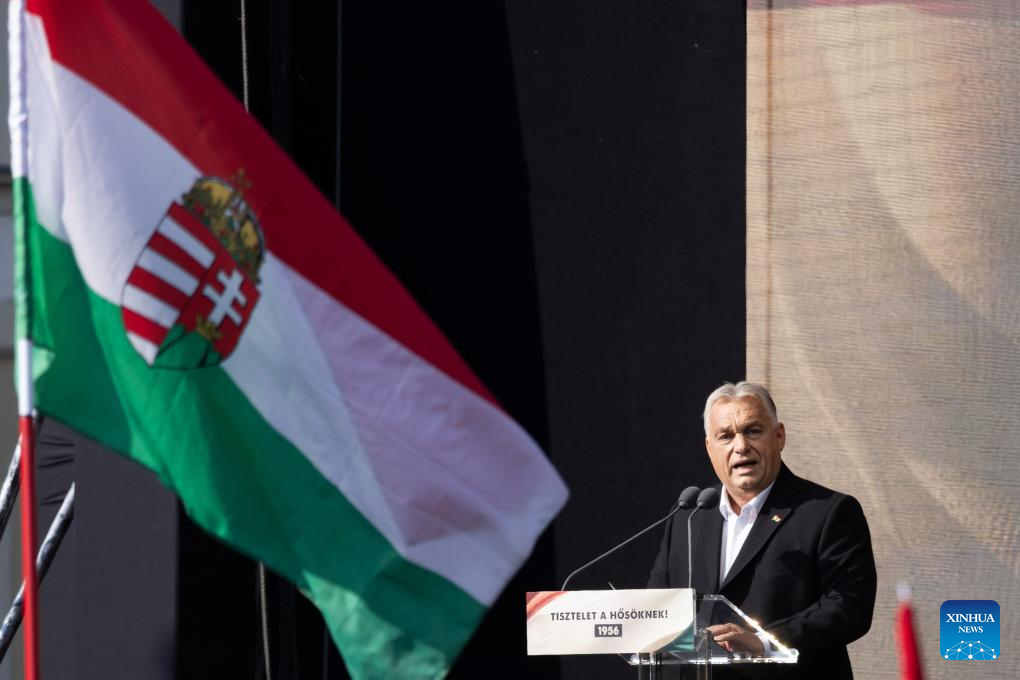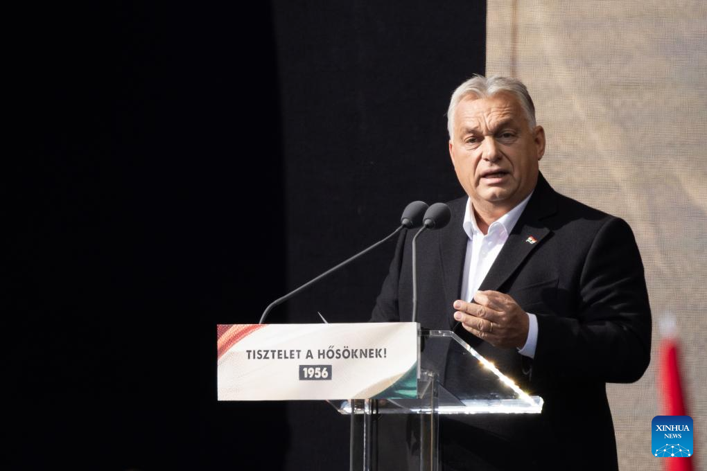 BUDAPEST, Oct. 23 (Xinhua) -- Hungarian Prime Minister Viktor Orban delivered a defiant speech in Budapest on Wednesday, marking the 68th anniversary of the 1956 revolution by emphasizing Hungary's determination to defend its national sovereignty against growing pressure from the European Union (EU).