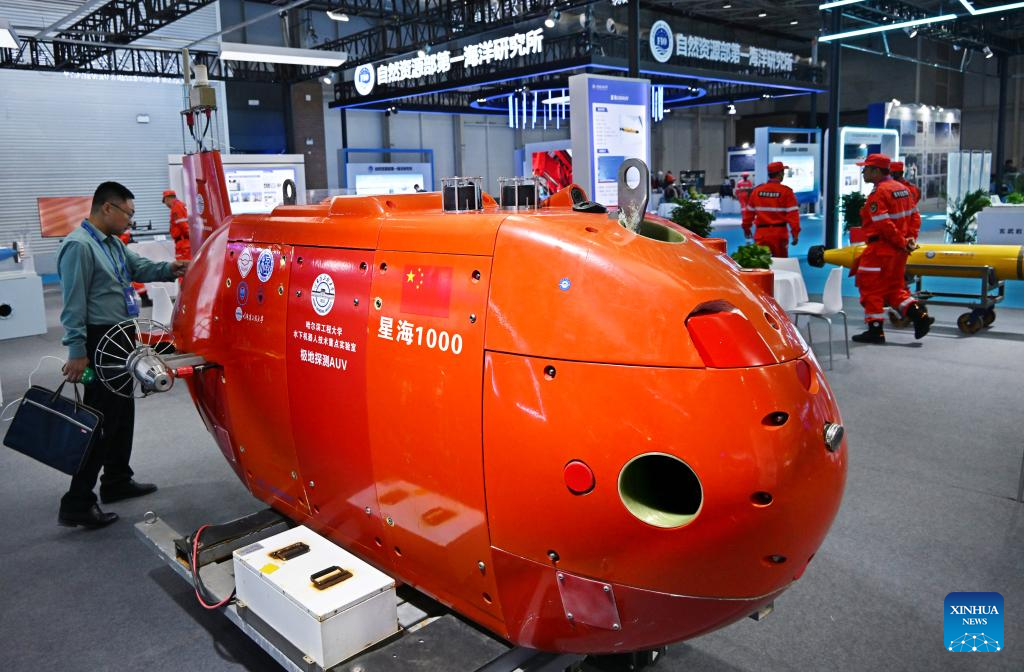 People visit the 2024 East Asia Marine Expo in Qingdao, east China's Shandong Province, Oct. 24, 2024. The 2024 East Asia Marine Expo opened Thursday in Qingdao, a coastal city of east China's Shandong Province, convening more than 500 exhibitors from home and abroad. (Xinhua/Li Ziheng)