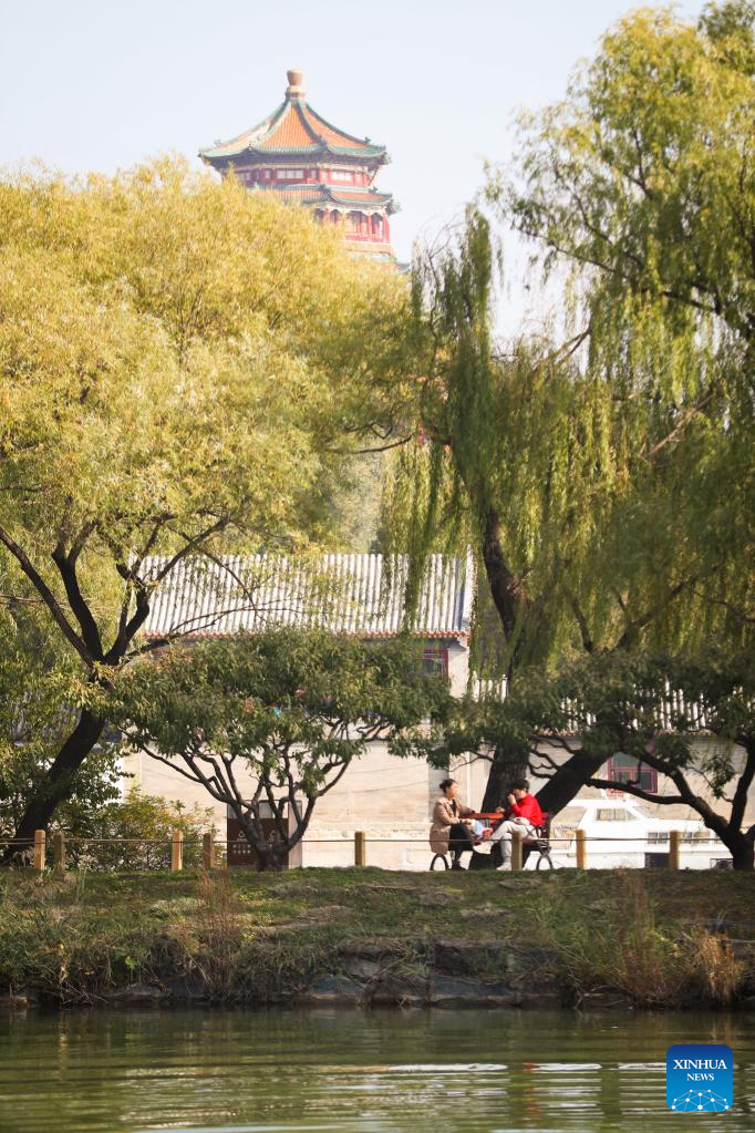 Tourists enjoy the autumn scenery at the Summer Palace in Beijing, capital of China, on Oct. 24, 2024. The Summer Palace is China's largest imperial park and among the most noted classical gardens in the world. In 1998, it was listed as one of the World Heritage Sites by UNESCO. (Photo by Na Yuqi/Xinhua)