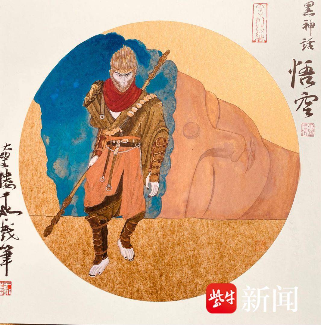 Photo shows a portrait of Sun Wukong from the Chinese video game "Black Myth: Wukong", created by Yu Shui, a 69-year-old Chinese artist who has gained online popularity for his unique renditions of popular cartoon characters using traditional Chinese painting techniques. (Photo/yangtse.com)
