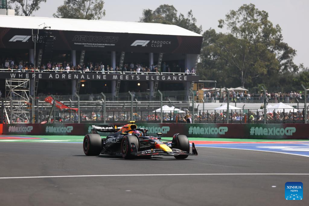 Red Bull's Dutch driver Max Verstappen competes during a practice session of the 2024 Formula One Mexico City Grand Prix at the Hermanos Rodriguez Circuit in Mexico City, Mexico, Oct. 25, 2024. (Xinhua/Li Mengxin)