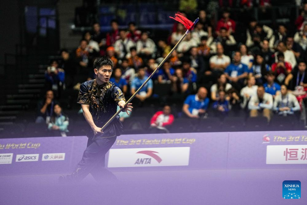 Zhang Qingchun of China competes during the Men's Qiangshu competition of the 3rd Taolu World Cup held in Yokohama, Japan, on Oct. 26, 2024. (Xinhua/Zhang Xiaoyu)