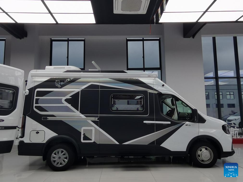 A recreational vehicle (RV) is pictured at an exhibition hall of Weihang RV company in Chenji Town of Yizheng City, east China's Jiangsu Province, Aug. 27, 2024. (Xinhua/Jiang Wenxi)