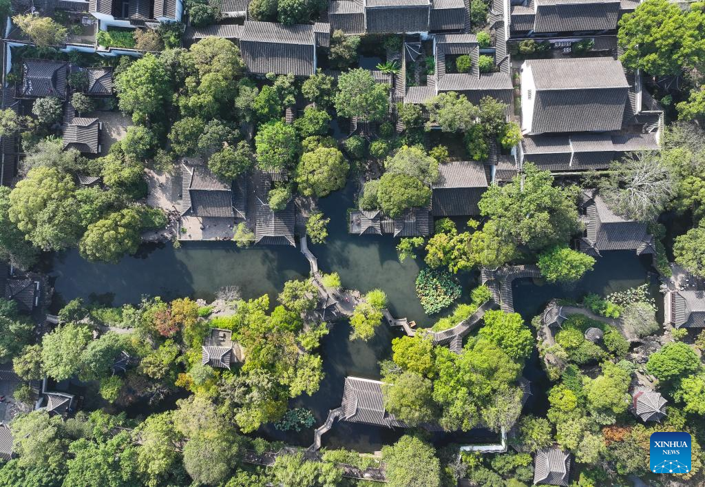 An aerial drone photo taken on Oct. 23, 2024 shows the scenery of Humble Administrator's Garden in Suzhou, east China's Jiangsu Province. About a 20-minute ride by high-speed train from east China's Shanghai, Suzhou is one of the richest cities in China, with its more than 100 classical gardens considered some of the most beautiful in the country, and nine of them serving as UNESCO world heritage sites.