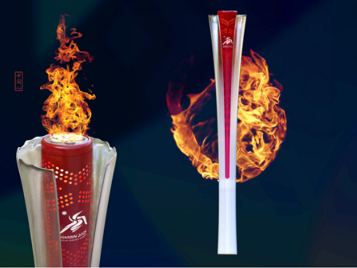 This picture shows the torch for the 9th Asian Winter Games in Harbin, capital of northeast China's Heilongjiang Province. (Organizing Committee of the 9th Asian Winter Games/Handout via Xinhua)