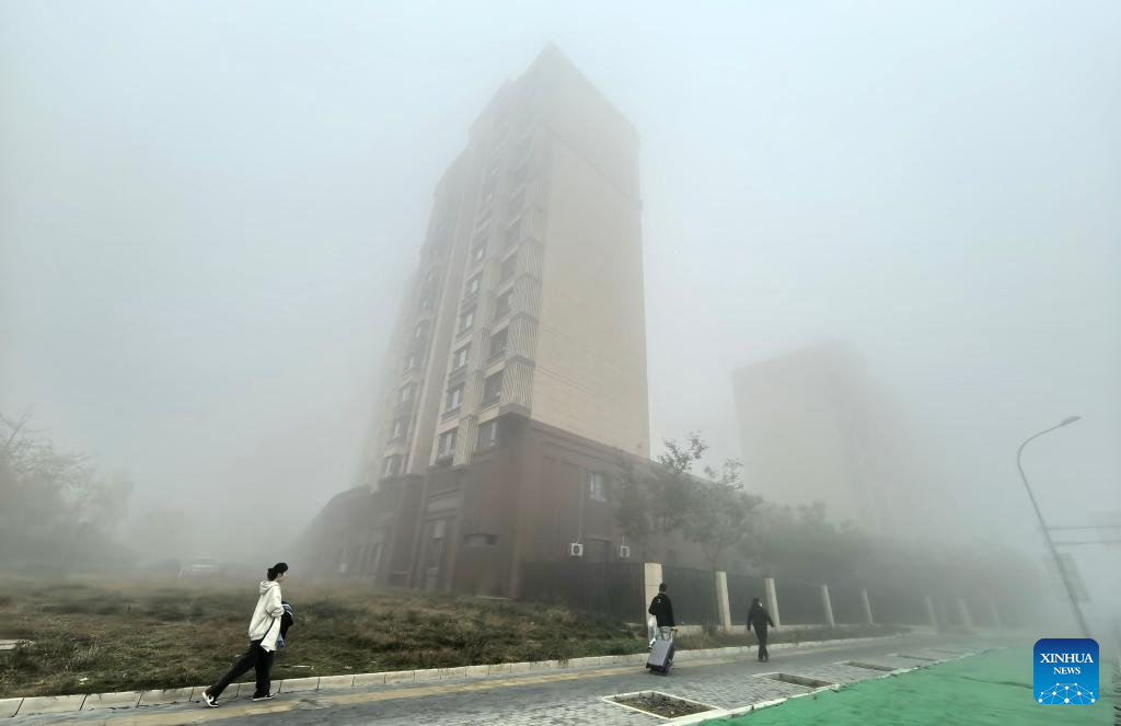 Citizens walk amid fog in Beijing, capital of China, Nov. 2, 2024. (Xinhua/Li Xin)