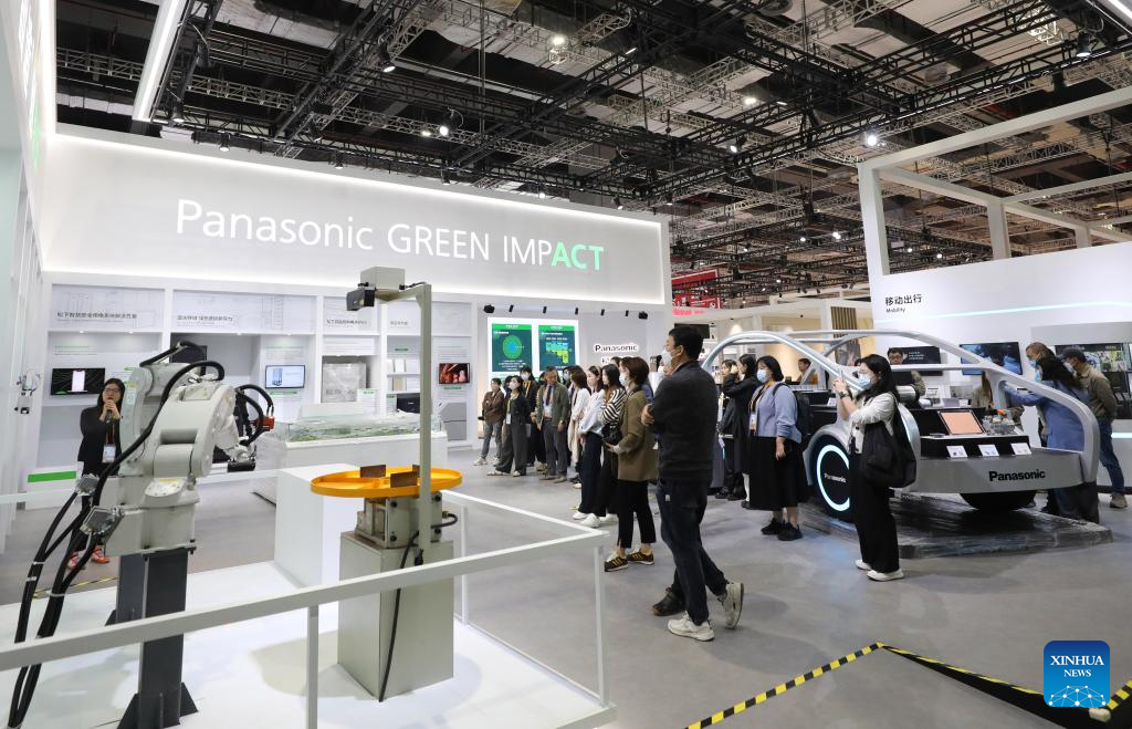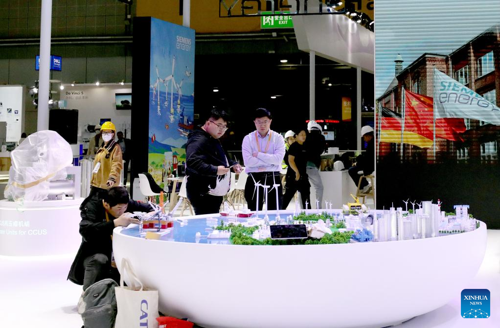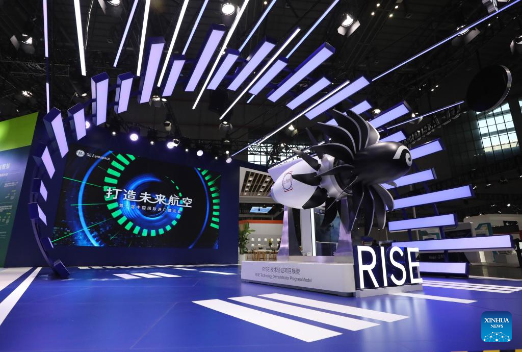 Staff members of exhibitors visit the exhibition booths at the National Exhibition and Convention Center (Shanghai), the main venue for the 7th China International Import Expo (CIIE), in east China's Shanghai, Nov. 2, 2024. Preparations for the 7th CIIE, which is scheduled to take place in Shanghai from Nov. 5 to 10, have entered the final stage. (Xinhua/Fang Zhe)