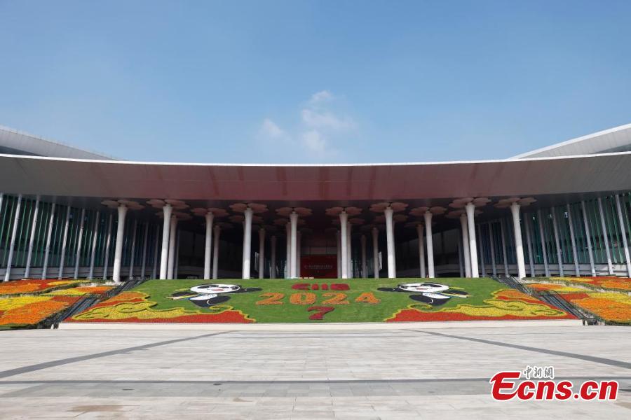 Staff members make final preparations for the National Exhibition and Convention Center (Shanghai), the main venue of the 7th China International Import Expo (CIIE), in Shanghai, Nov. 3, 2024. (Photo: China News Service/Yin Liqin)