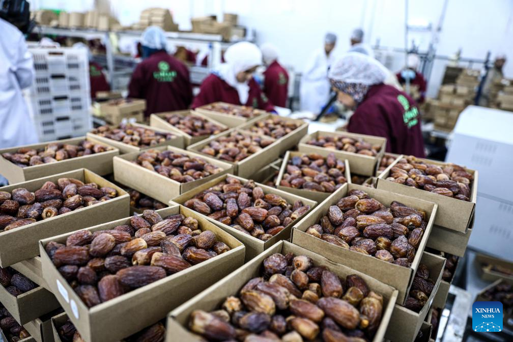 Workers pack dates at a production line of Linah Farms, a leading producer of Medjool dates in Egypt and the Middle East, in Menoufia Governorate, Egypt, Oct. 28, 2024. (Xinhua/Ahmed Gomaa)