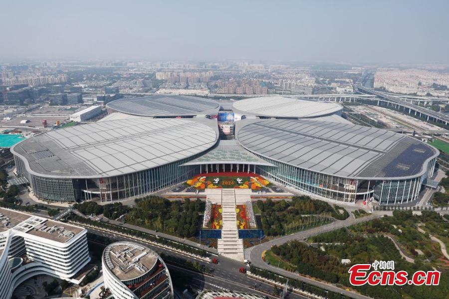 Aerial view of the National Exhibition and Convention Center (Shanghai), the main venue for the 7th China International Import Expo (CIIE), in Shanghai, Nov. 4, 2024. (Photo: China News Service/Yin Liqin)