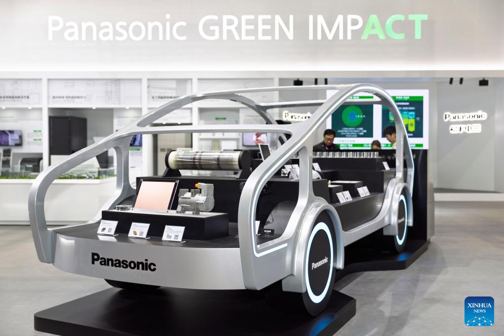 People visit the exhibition area of Panasonic during the seventh China International Import Expo (CIIE) in east China's Shanghai, Nov. 5, 2024. The newest edition of the CIIE, the world's first national-level exposition dedicated to imports, opened on Tuesday in Shanghai. (Xinhua/Wang Xiang)