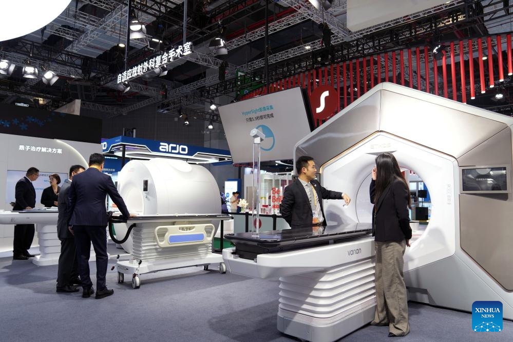 This photo taken on Nov. 5, 2024 shows an adaptive radiosurgery operating space during the seventh China International Import Expo (CIIE) in east China's Shanghai. The newest edition of the CIIE, the world's first national-level exposition dedicated to imports, opened on Tuesday in Shanghai. (Xinhua/Liu Ying)