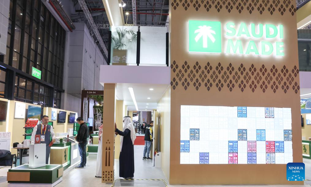 This photo taken on Nov. 5, 2024 shows the Saudi Arabia Pavilion during the seventh China International Import Expo (CIIE) in east China's Shanghai. The newest edition of the CIIE, the world's first national-level exposition dedicated to imports, opened on Tuesday in Shanghai.