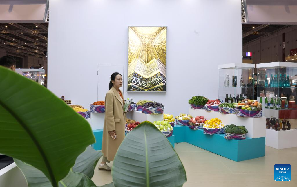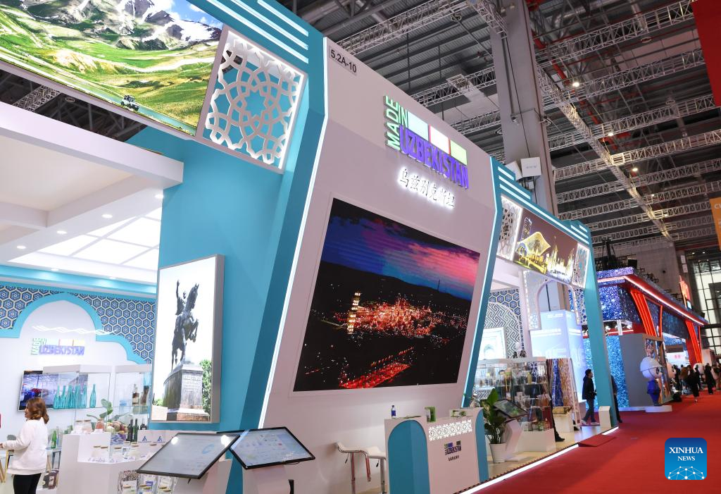This photo taken on Nov. 5, 2024 shows the Uzbekistan Pavilion during the seventh China International Import Expo (CIIE) in east China's Shanghai. The newest edition of the CIIE, the world's first national-level exposition dedicated to imports, opened on Tuesday in Shanghai.