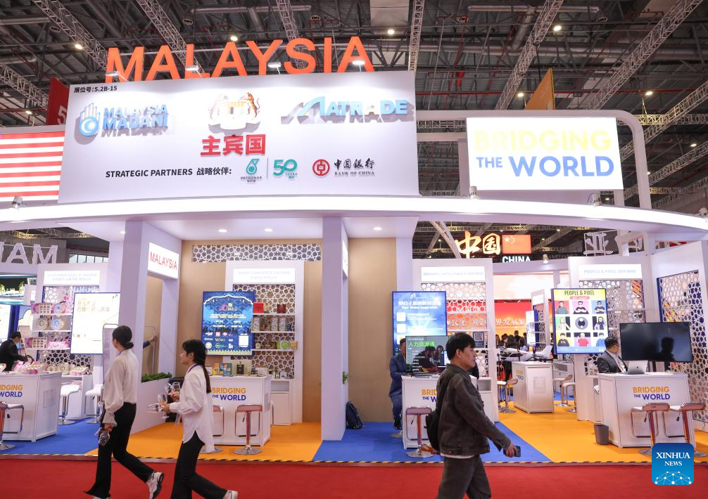 This photo taken on Nov. 5, 2024 shows the Malaysia Pavilion during the seventh China International Import Expo (CIIE) in east China's Shanghai. The newest edition of the CIIE, the world's first national-level exposition dedicated to imports, opened on Tuesday in Shanghai.