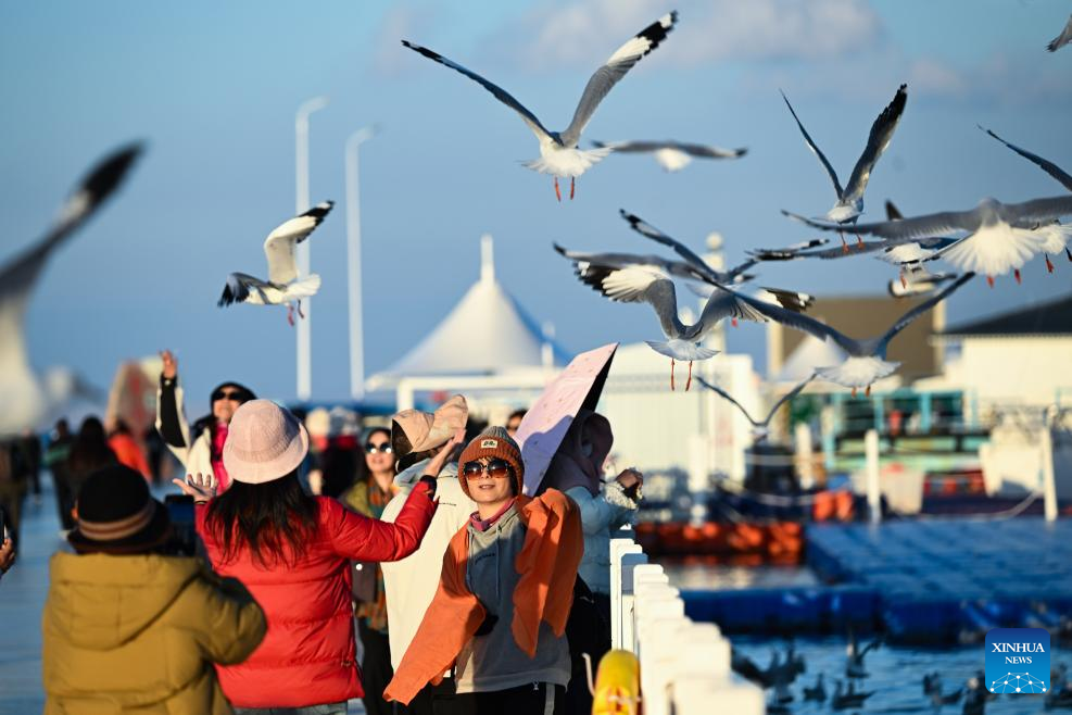 Tourists visit a scenic spot of Qinghai Lake in northwest China's Qinghai Province, Oct. 18, 2024. (Xinhua/Zhang Long)