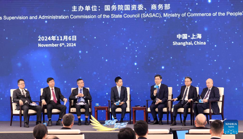 A sub-forum titled "Deepening Cooperation on Industrial and Supply Chains for High-quality Development of Enterprises" is held during the 7th Hongqiao International Economic Forum in Shanghai, east China, Nov. 6, 2024. (Xinhua/Yin Gang)