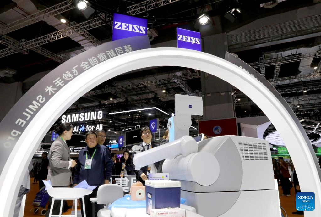 This photo taken on Nov. 6, 2024 shows a new generation of the small incision lenticule extraction robot from Zeiss during the seventh China International Import Expo (CIIE) in east China's Shanghai. During the ongoing 7th CIIE, many new technologies, achievements and products met the public for the first time. (Xinhua/Fang Zhe)