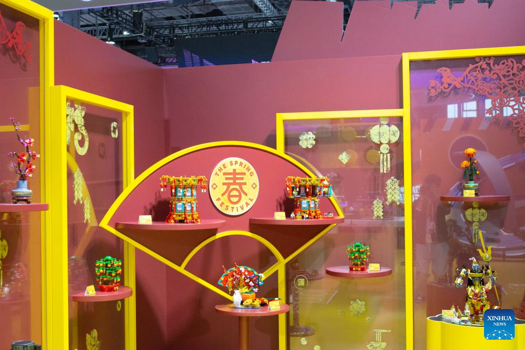 This photo taken on Nov. 6, 2024 shows new products at the booth of Lego during the seventh China International Import Expo (CIIE) in east China's Shanghai, Nov. 6, 2024. During the ongoing 7th CIIE, many new technologies, achievements and products met the public for the first time. (Xinhua/Tang Rufeng)