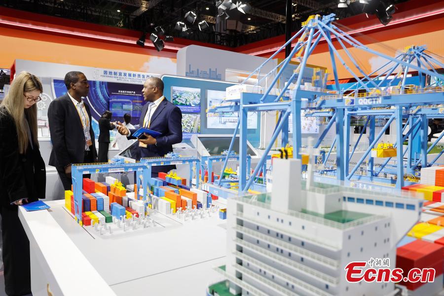 People visit the Tanzania Pavilion during the 7th China International Import Expo (CIIE) in Shanghai, Nov. 6, 2024. (Photo: China News Service/Yin Liqin)