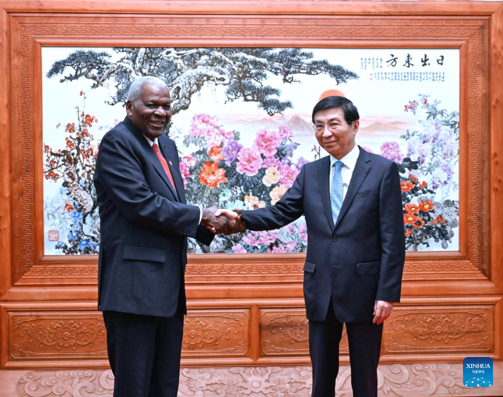 Wang, chairman of the Chinese People's Political Consultative Conference (CPPCC) National Committee, said China is willing to work with Cuba to implement the important consensus reached by the two heads of state and jointly build a China-Cuba community with a shared future.