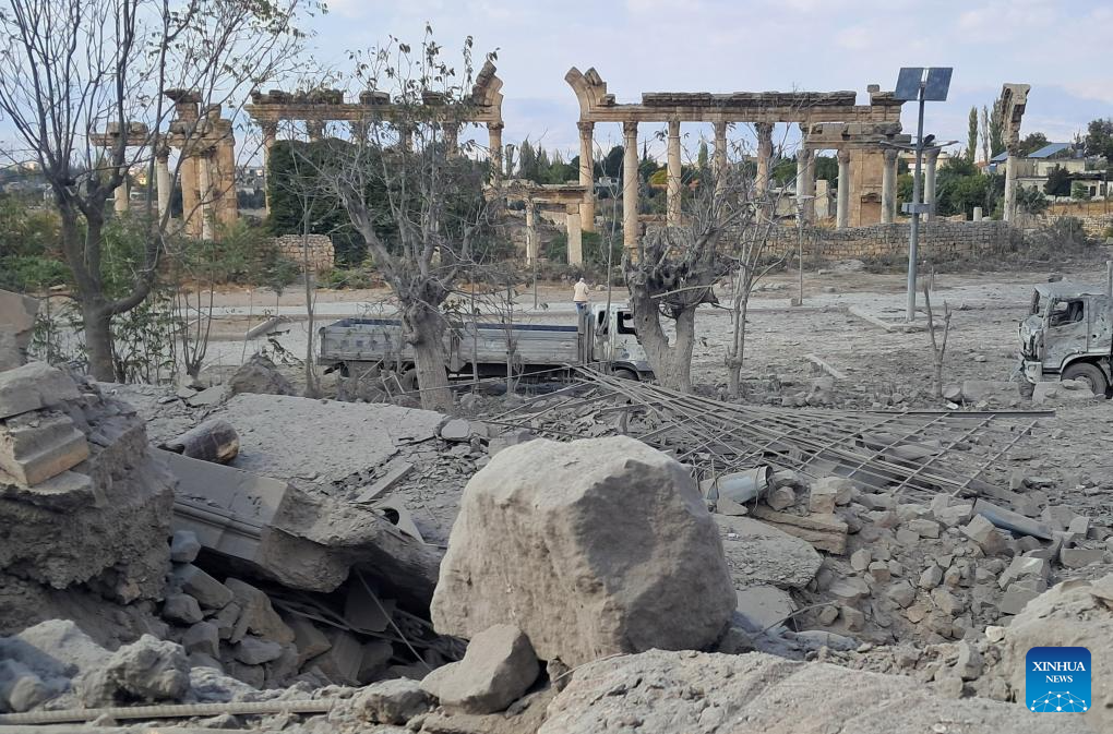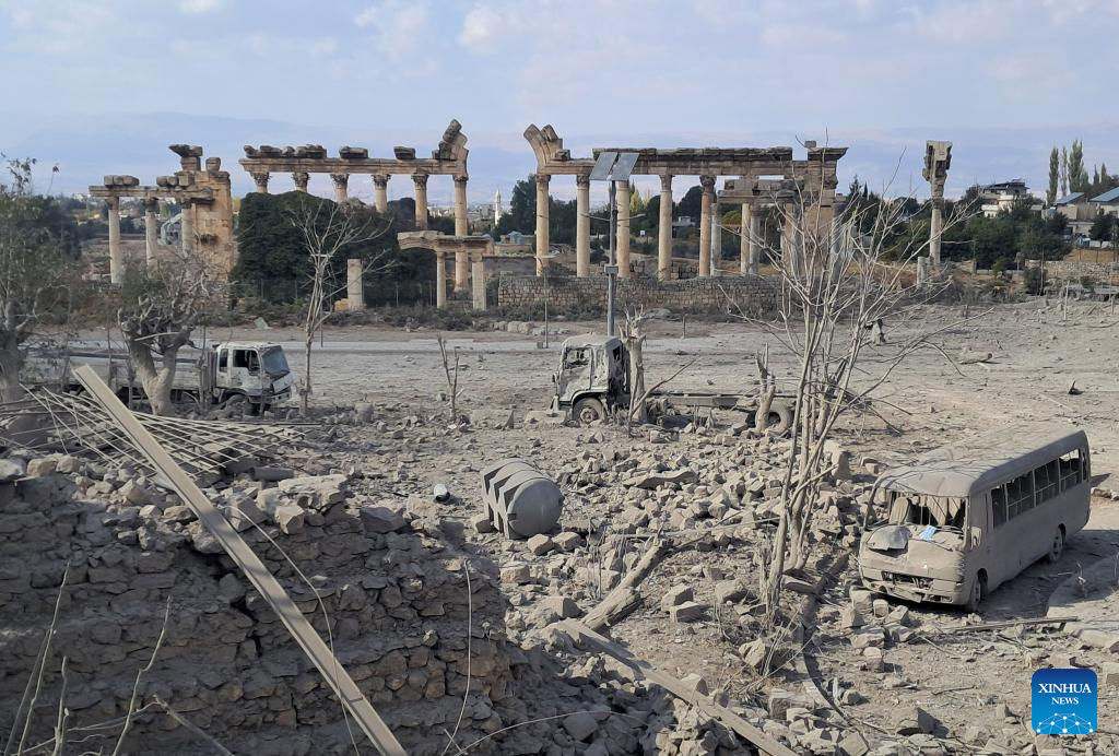 This photo shows the damage caused by Israeli airstrikes inside the ancient citadel of Baalbek in Lebanon, on Nov. 7, 2024. On Wednesday, Israeli forces targeted residential neighborhoods in Baalbek and the historic "Al-Manshiya" building, which was completely destroyed, according to Baalbek Mayor Mustafa al-Shal. (Photo by Maher Kamar/Xinhua)