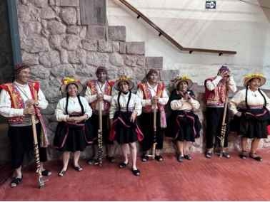 Peruvian artists pose in traditional clothing. (People's Daily/Zhang Penghui)
