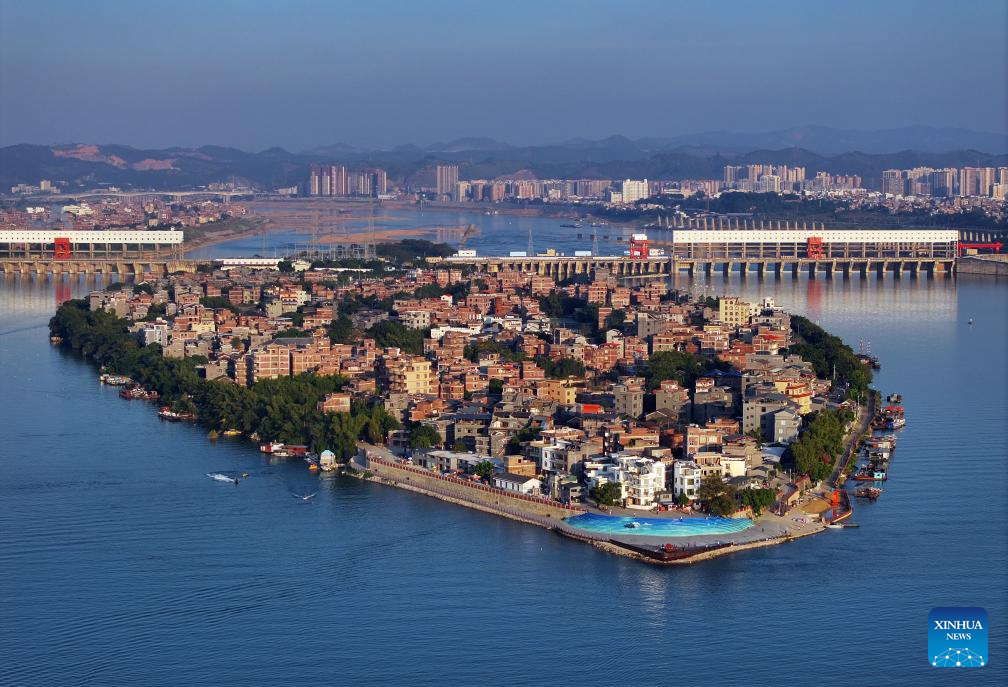 An aerial drone photo shows a view of Sizhou Village of Changzhou District in Wuzhou, south China's Guangxi Zhuang Autonomous Region, Nov. 13, 2024. Local authorities in Changzhou District have actively developed cultural tourism in an effort to advance rural revitalization. (Xinhua/Huang Xiaobang)