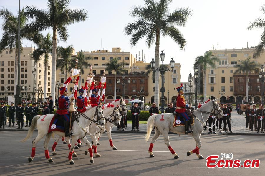 Chinese President Xi Jinping attends a grand welcome ceremony hosted by Peruvian President Dina Boluarte in Lima, Peru, Nov. 14, 2024. (Photo: China News Service/Sheng Jiapeng)