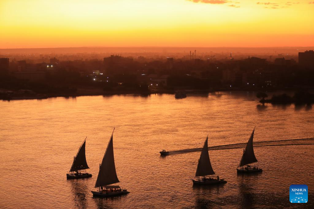 Boats sail on the Nile River at sunset in Cairo, Egypt, on Nov. 18, 2024. (Xinhua/Sui Xiankai)