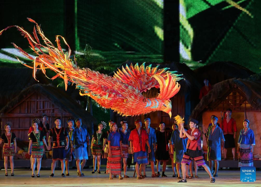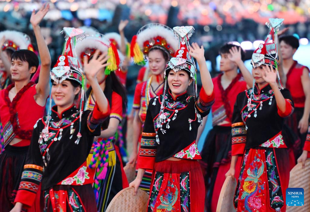 Artists perform during the opening ceremony of the 12th National Traditional Games of Ethnic Minorities of the People's Republic of China in Sanya, south China's Hainan Province, Nov. 22, 2024. (Xinhua/Jiang Han)