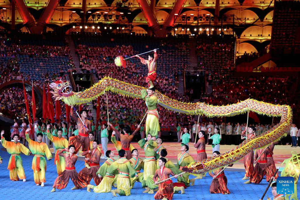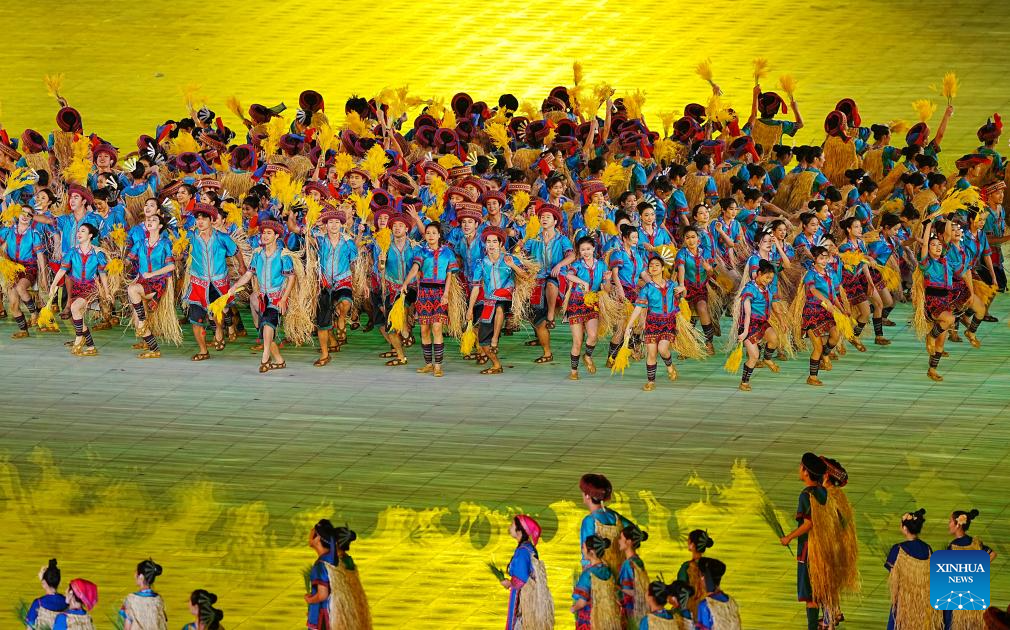 Artists perform during the opening ceremony of the 12th National Traditional Games of Ethnic Minorities of the People's Republic of China in Sanya, south China's Hainan Province, Nov. 22, 2024. (Xinhua/Zhang Bowen)