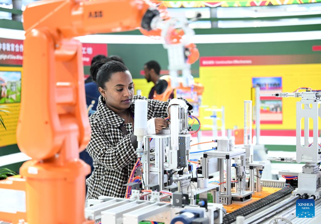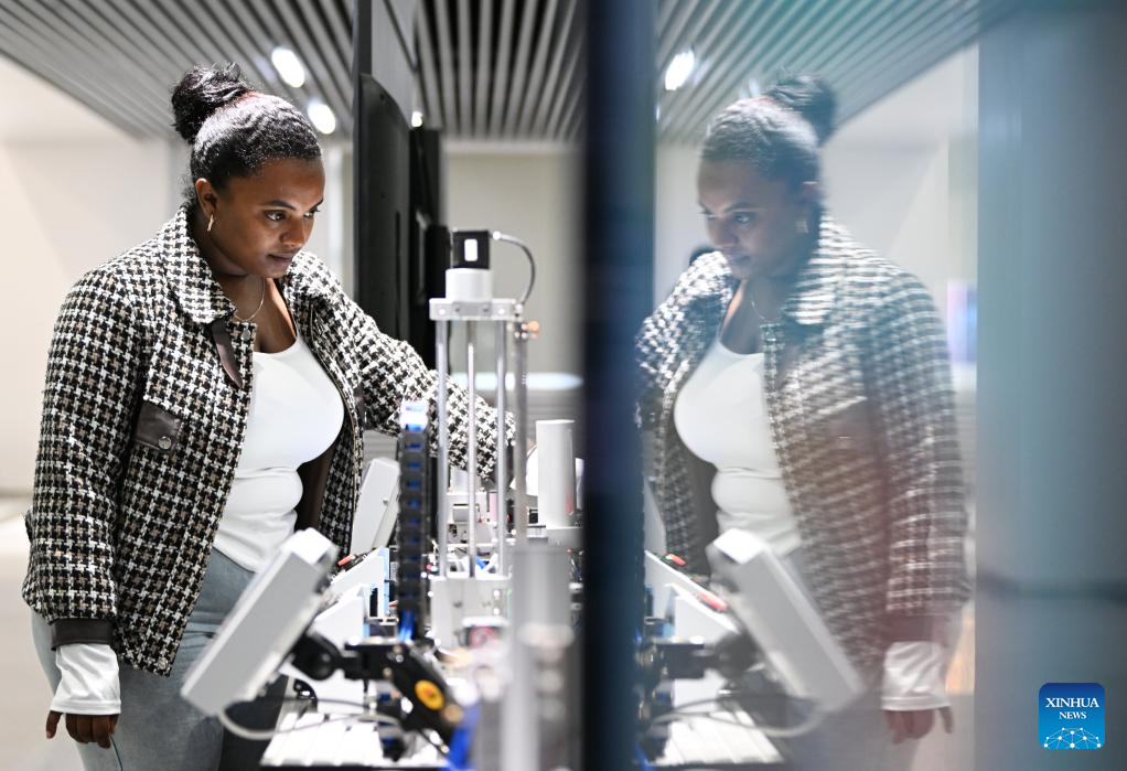 At the just-concluded 2024 World Vocational and Technical Education Development Conference held in Tianjin, Kalkidan, a 24-year-old Ethiopian, briefed visitors on an industrial robot training platform at the booth of Ethiopian Luban Workshop.
