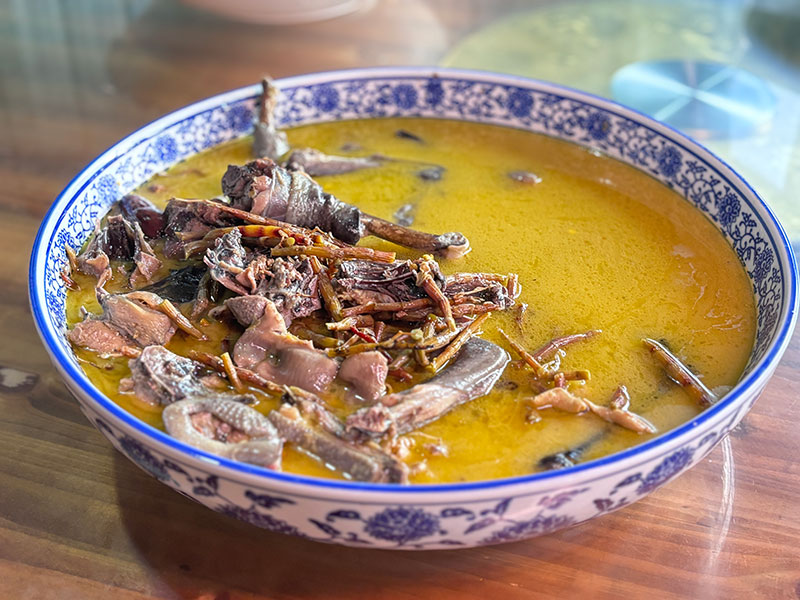 Another local favorite is wild sour jujube with cured pork trotters. To cut the richness of the pork, Zhenyuan locals add foraged mountain sour jujubes, slow-cooking the trotters until the flavors meld into a delightful blend of sour, sweet, and savory.
