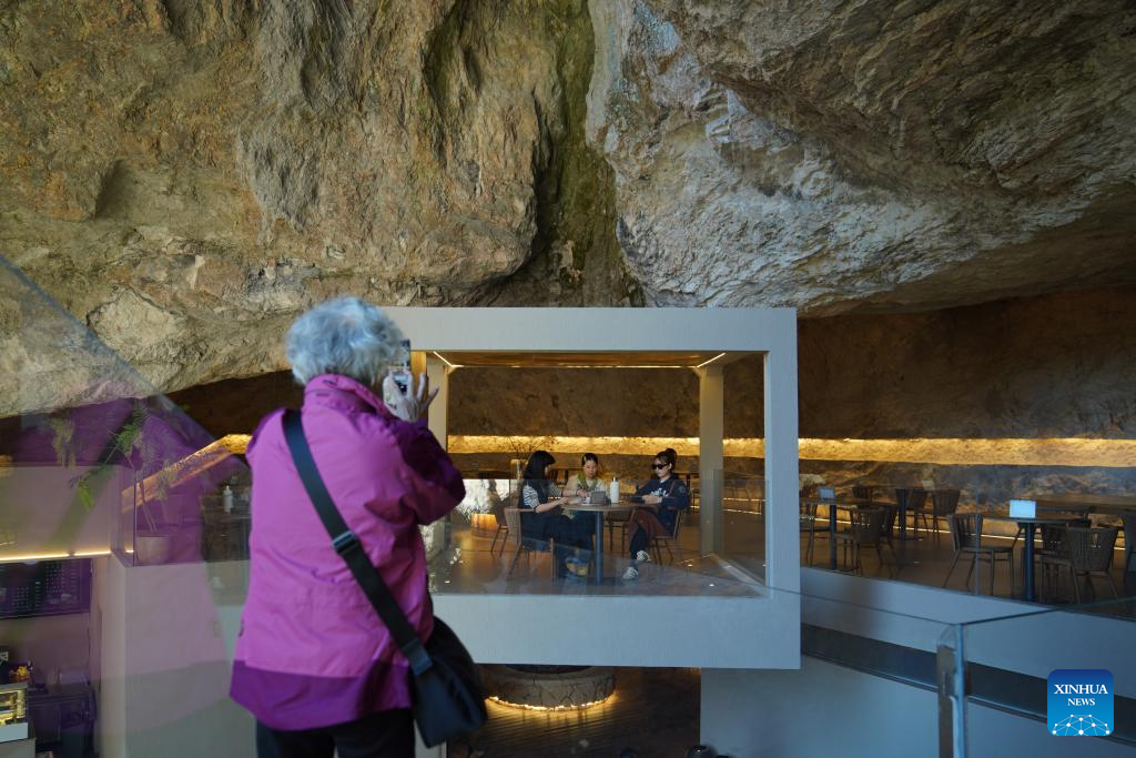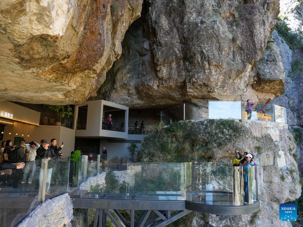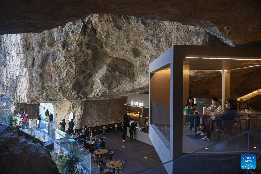 Tourists enjoy their leisure time at a coffee shop located on a cliff inside the Yandang Mountain scenic spot in Yueqing City, east China's Zhejiang Province, Nov. 26, 2024. Yandang Mountain is a national 5A-level scenic area, a national forest park and a UNESCO-accredited geopark. The beautiful scenery and rich historical culture there has attracted millions of visitors. (Xinhua/Zhang Nan)