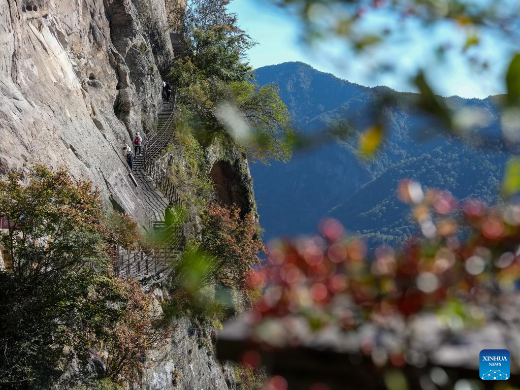 Tourists walk on a skywalk at the Yandang Mountain scenic spot in Yueqing City, east China's Zhejiang Province, Nov. 26, 2024. Yandang Mountain is a national 5A-level scenic area, a national forest park and a UNESCO-accredited geopark. The beautiful scenery and rich historical culture there has attracted millions of visitors. (Xinhua/Huang Zongzhi)