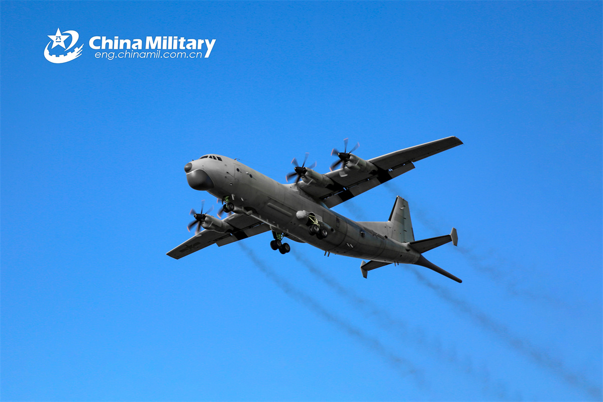 An anti-submarine patrol aircraft attached to an aviation unit with the navy under the Chinese PLA Northern Theatre Command takes off for a collaborative anti-submarine training exercise on October 15, 2024. (eng.chinamil.com.cn/Photo by Yang Lijian)